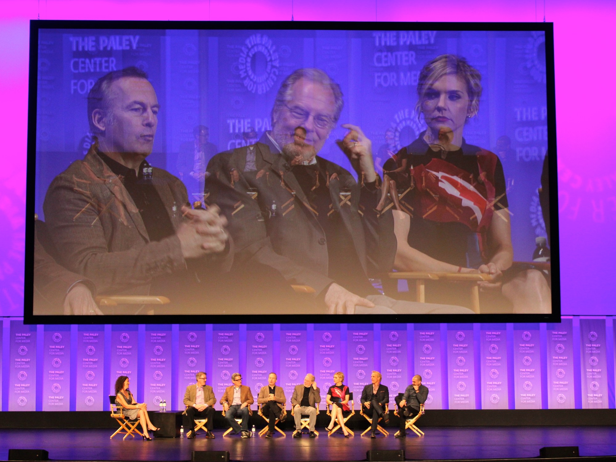 The crowd at PaleyFest roared its approval in sheer delight and surprise as a surprise guest appearance of Mark Margolis (Tio Salamanca) lit up the screen! Even title star Bob Odenkirk (“Jimmy McGill/Saul Goodman”) was a little shocked after watching it all back: “I can’t remember what happens in these episodes.”