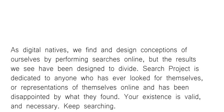 My experiences on the Internet were also largely informed by Search, and by the algorithms that powered my favorite platforms. I’d like to give credit to the scholarship and instruction of Safiya Noble for prompting the line of questioning that resulted in this project: How are Search engines structured to affect our identity-formation? Where is the danger in choosing an avatar that looks like you to take on the virtual world? And finally, how do these results compare to what we “really” look like? What is an authentic digital representation?