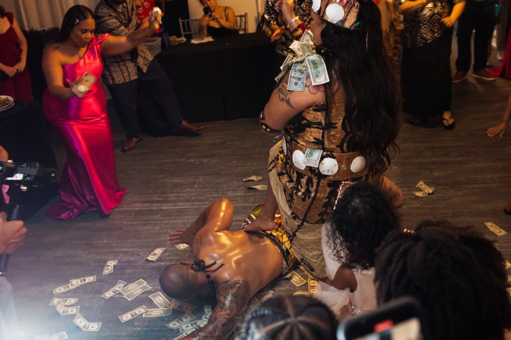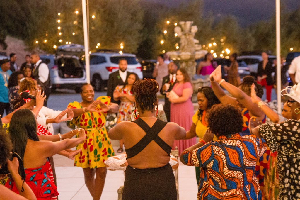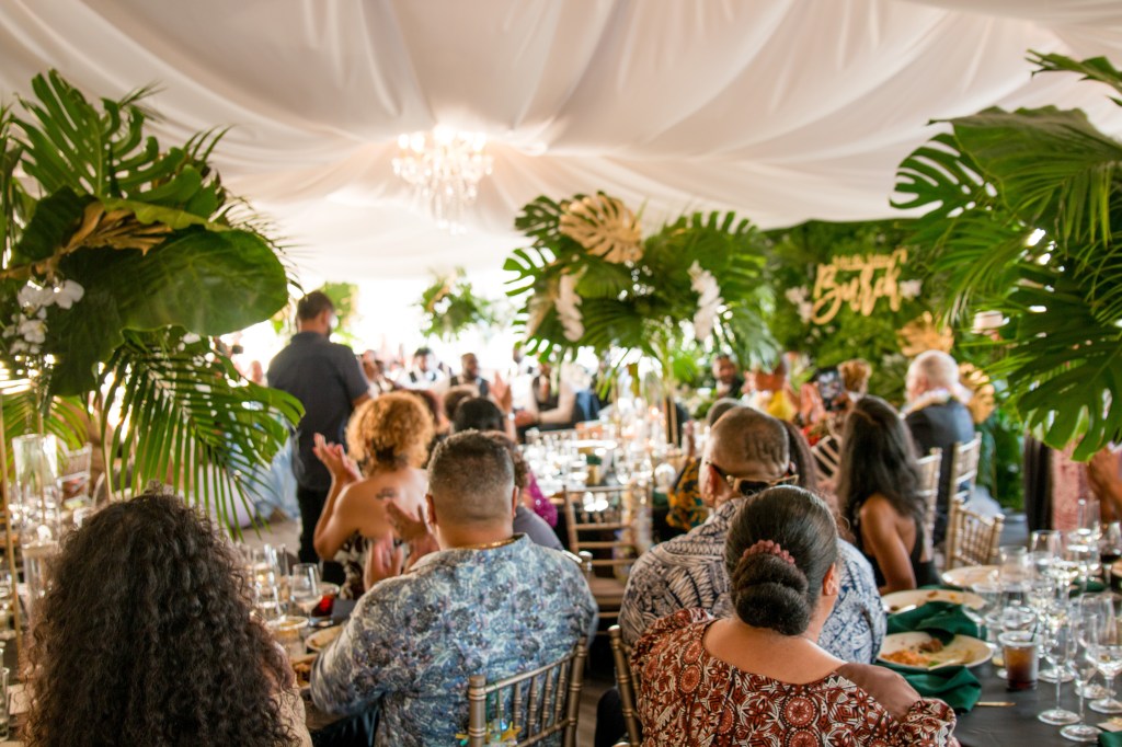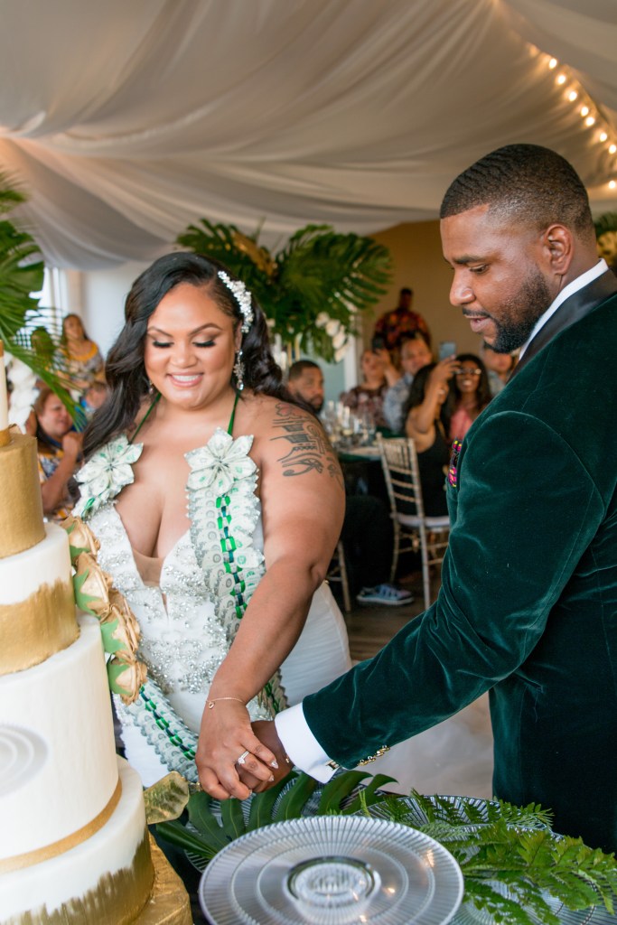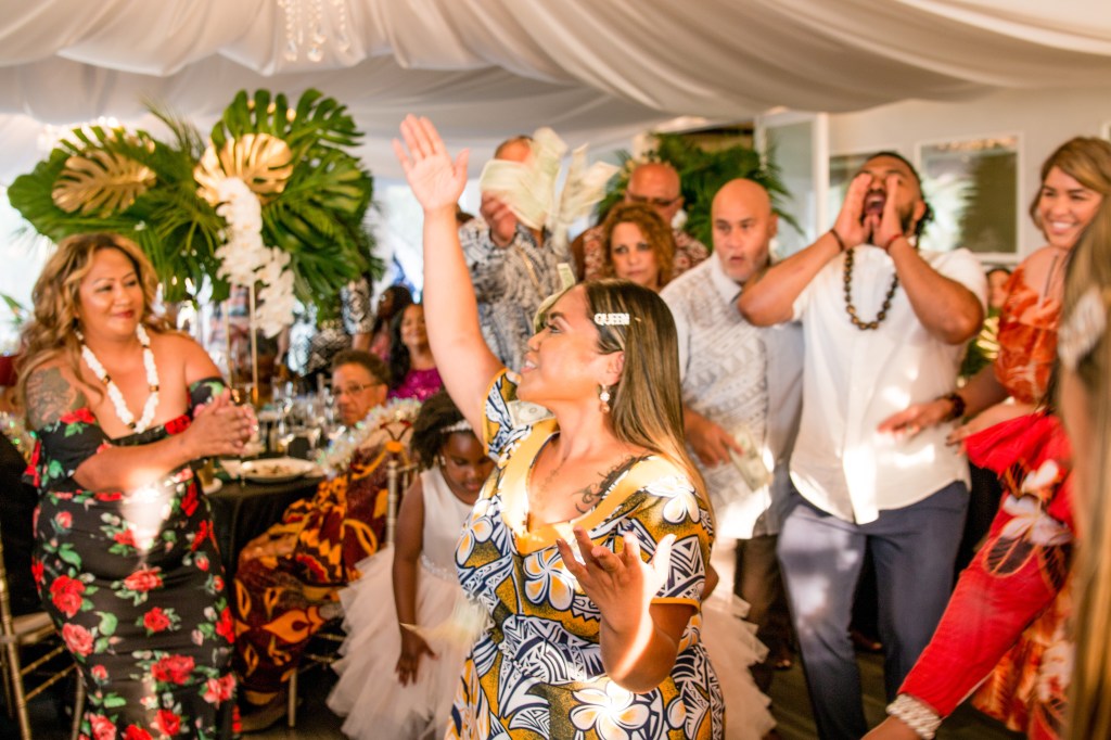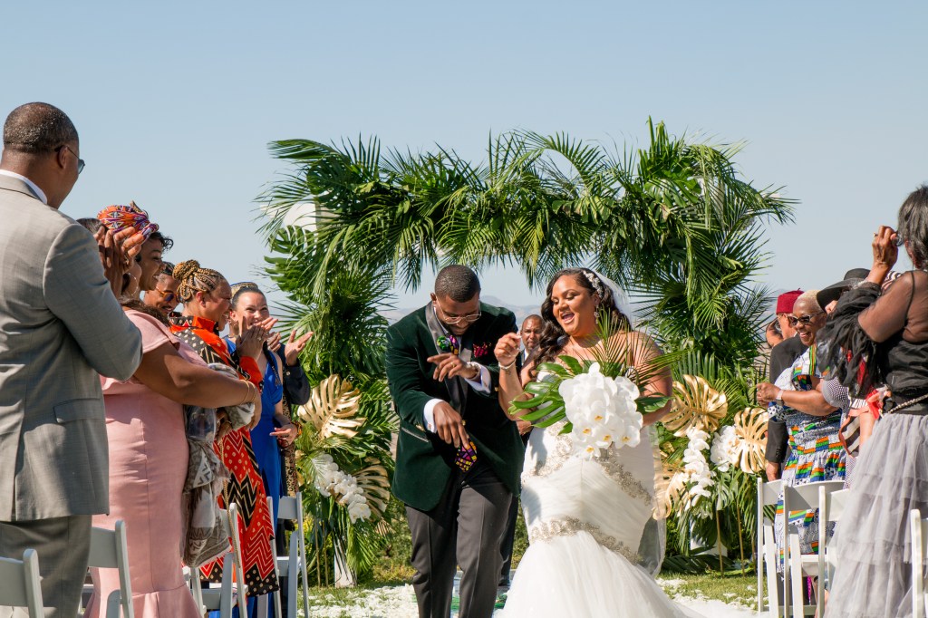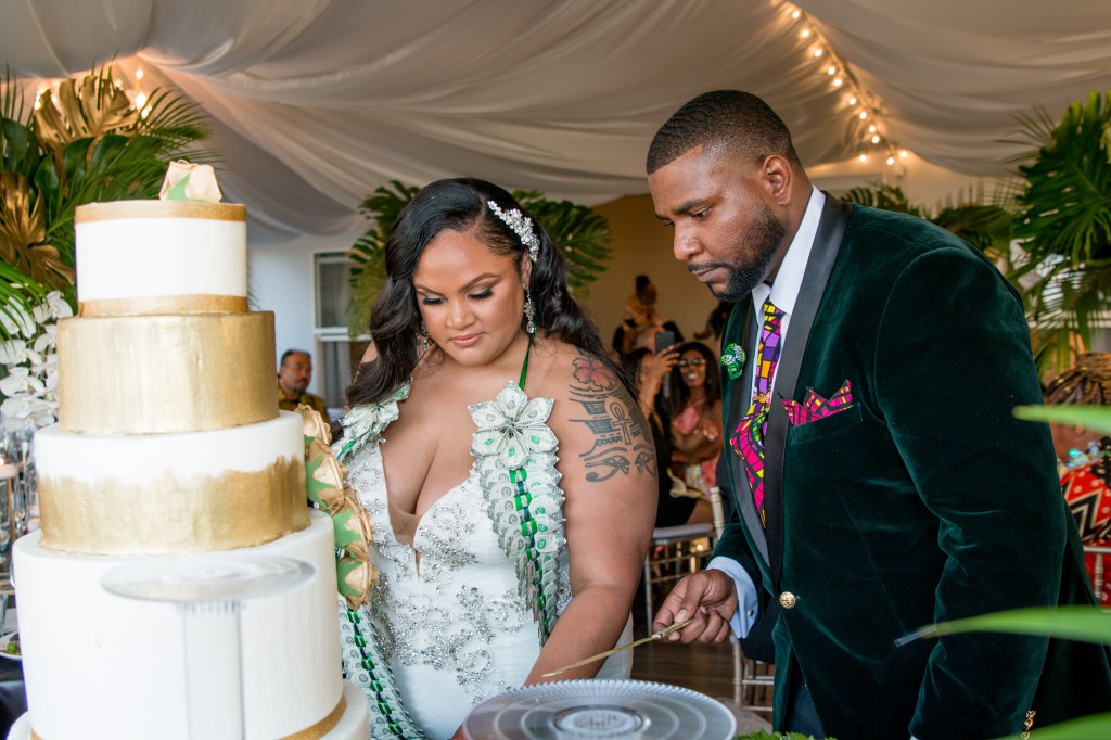 The cultures of the blessed couple @__dr.saidah__ and @percyburch could be felt in every detail – their gifts, tattoos, aunty’s hats, groomsmen’s locs, oiled up uncles acting as human surfboards.