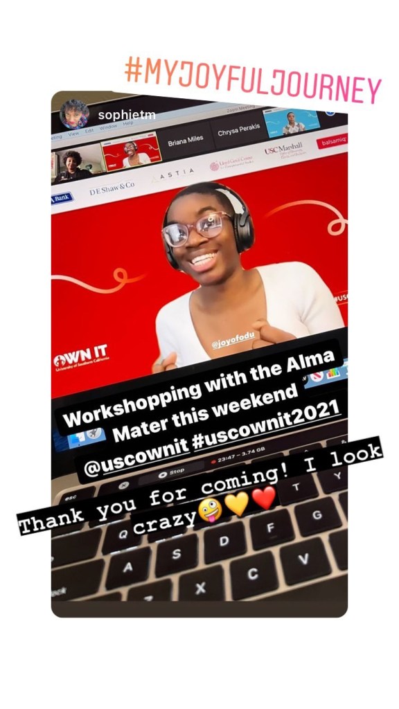 One of the most recent audiences of the workshop was USC OWN IT! This organization is a student-run, non-profit org that connects undergrad students at the University of Southern California to powerful, inspiring, and motivating women like Alyson Stoner, Rachel Scott, Coco Bassey and so many more! I was honored to be among them.