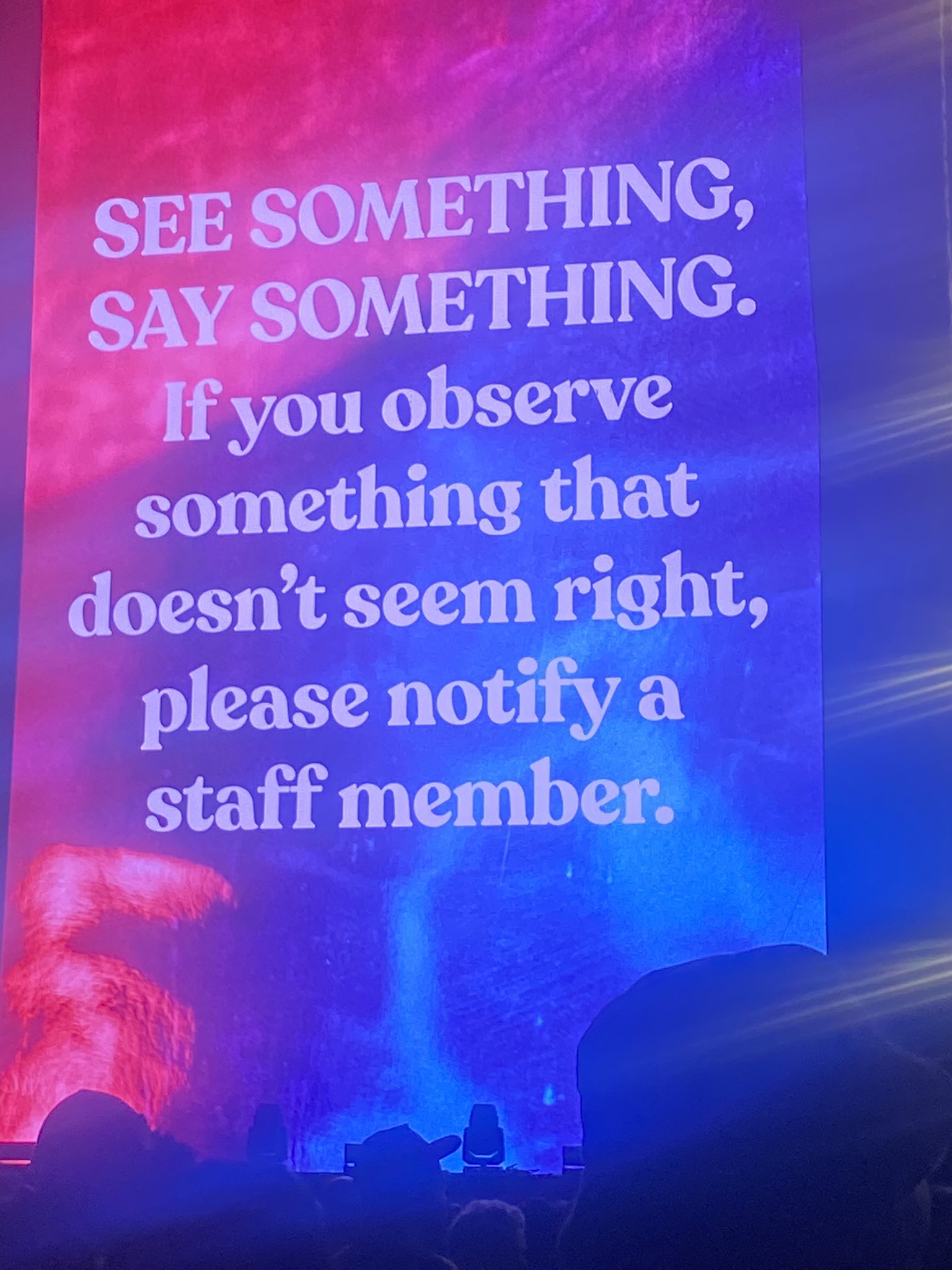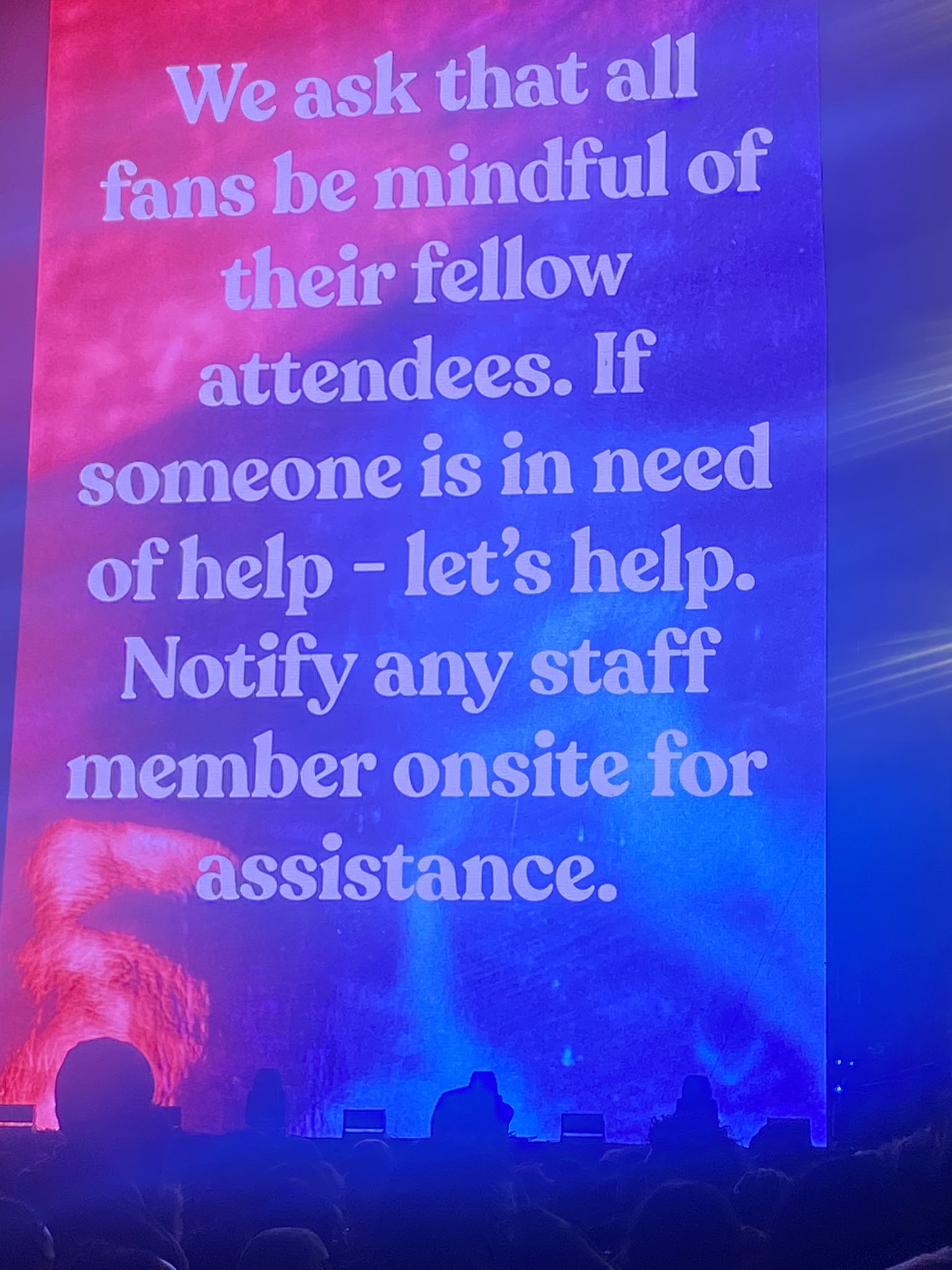 This was the calmest live music event I’ve attended. These signs flash before every set: