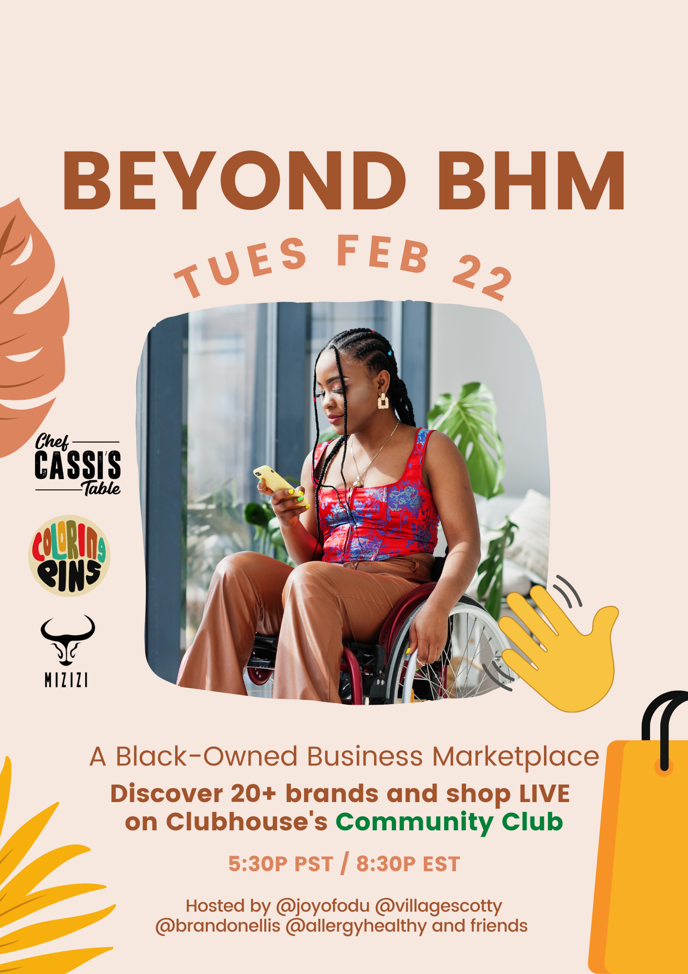 Hosting on Clubhouse again, in one of the LARGEST #socialaudio Clubs🎉 TUES FEB 22 – Discover 20+ Black-owned brands and shop LIVE in the Clubhouse Community Club! #SupportBlackBusiness