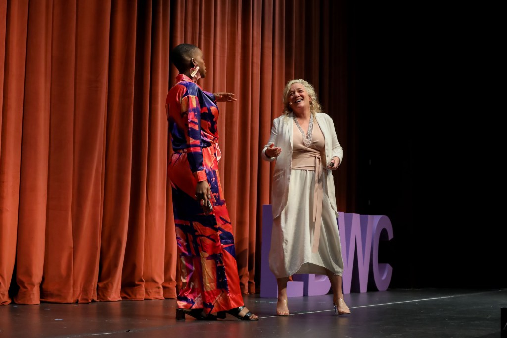 The @leshercenter for the Arts seats 700 people and I stood there from 9 am to 5pm (with a few lovely keynotes and panels in between) EMCEEING ALL DAY for hundreds of women!🤩