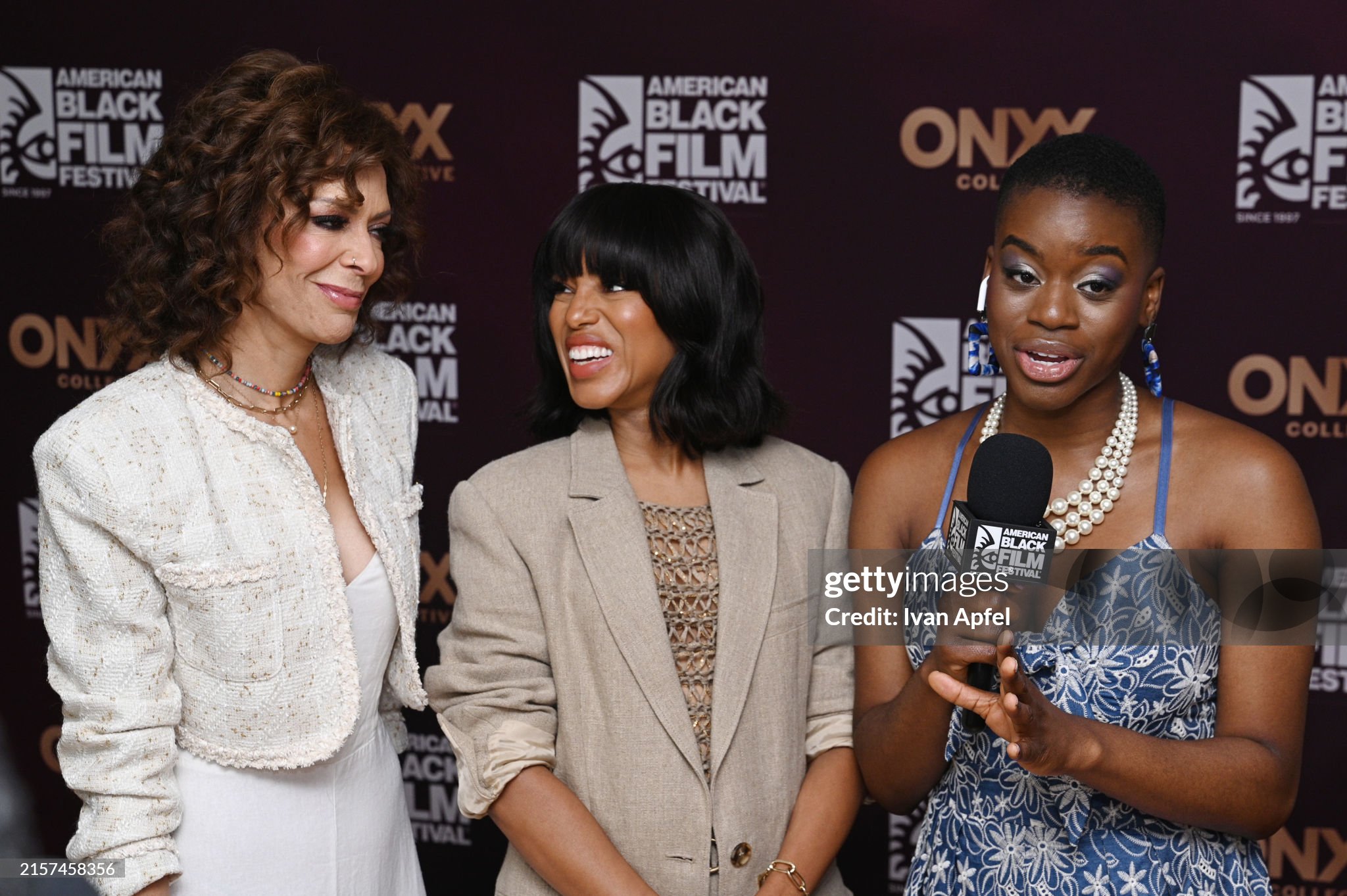 MIAMI BEACH, FL – JUNE 13: Kerry Washington and Tracy McMillan are interviewed at the “UnPrisoned” Season 2 World Premiere during the 2024 American Black Film Festival at the New World Center on June 13, 2024, in Miami Beach, Florida. (Photo by Alekandra London/Getty Images)