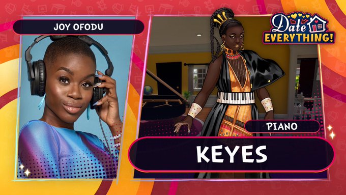 Everything about working with the team was great, especially as it’s another gaming voiceover role that I’ve added to my portfolio in that vertical as a voiceover artist. In Date Everything, Keyes is a dateable bougie, Igbo accented piano, and it was such a thrill to voice her!